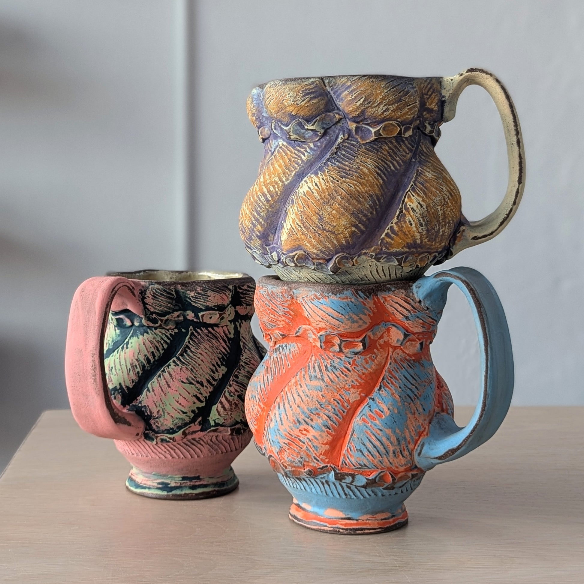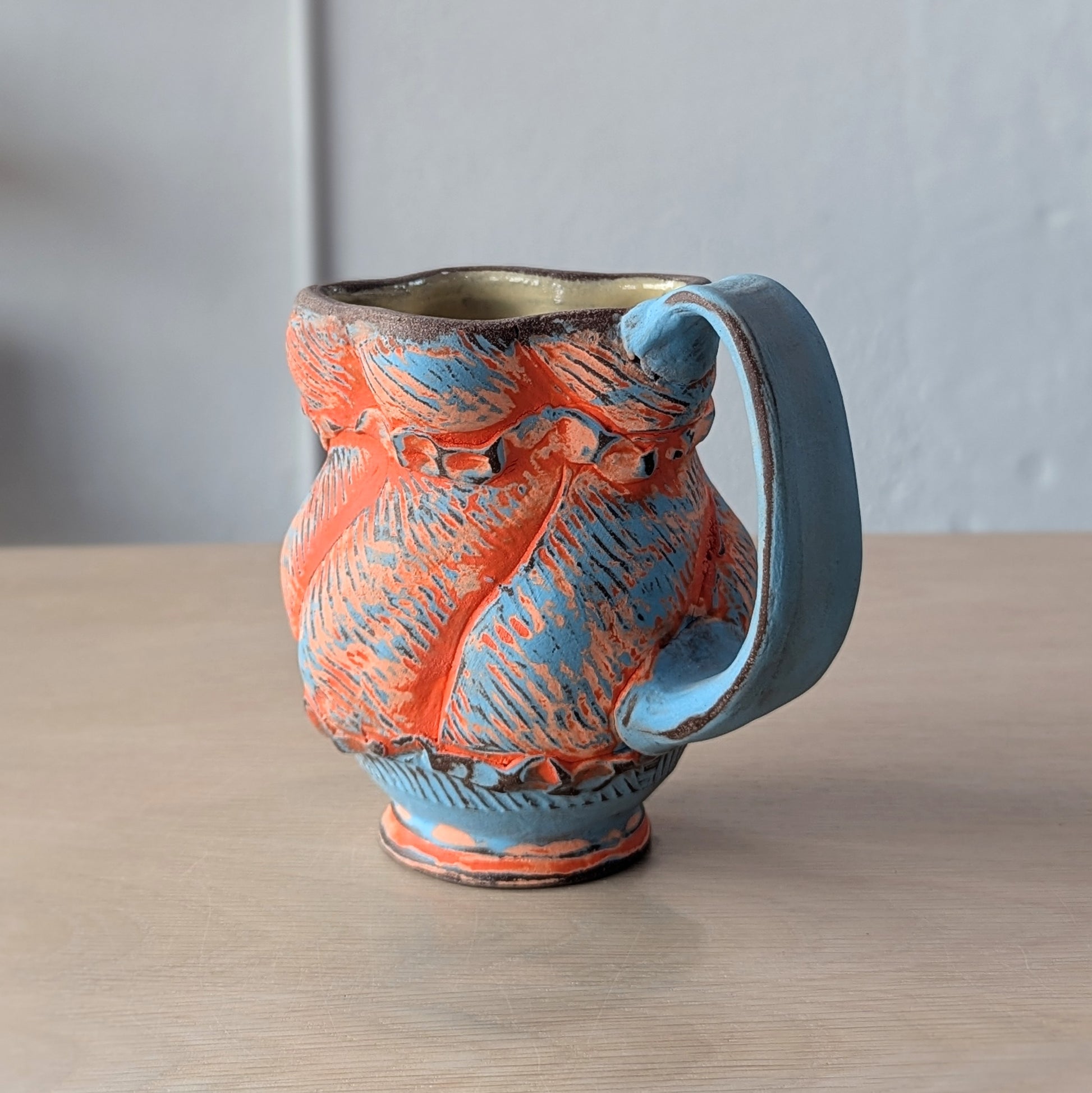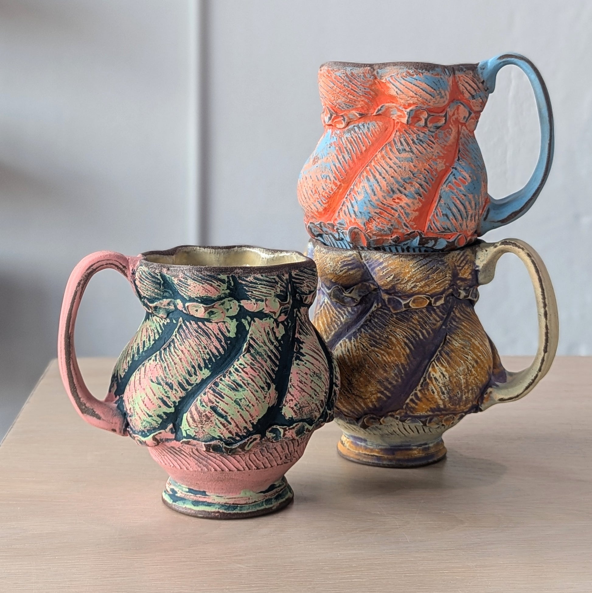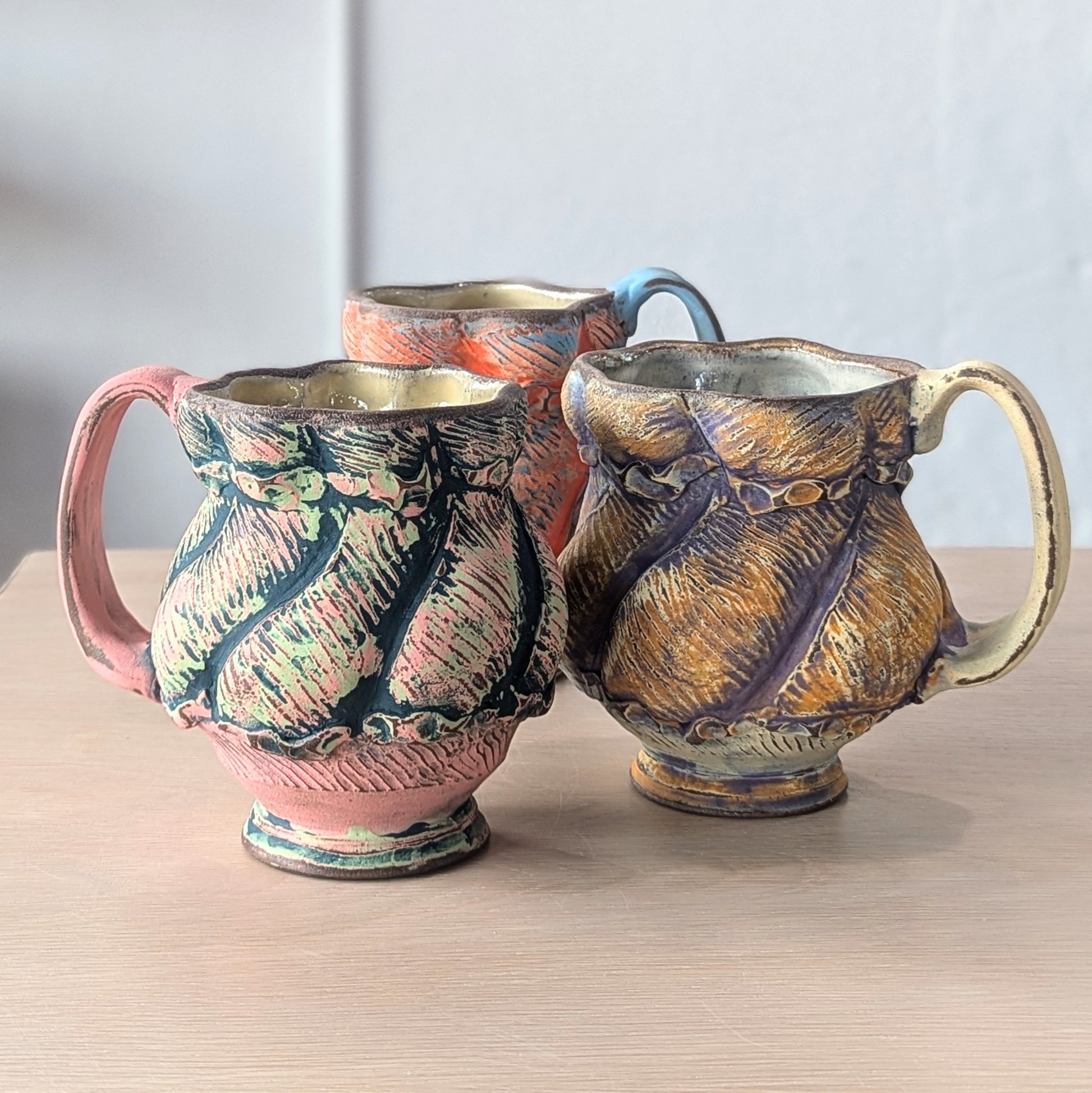 This hand-thrown and altered mug undergoes several glazing and firing rounds to achieve its complex depth and layered texture. Enjoy this functional sculpture with your daily cup of joe, tea, or favorite beverage.
