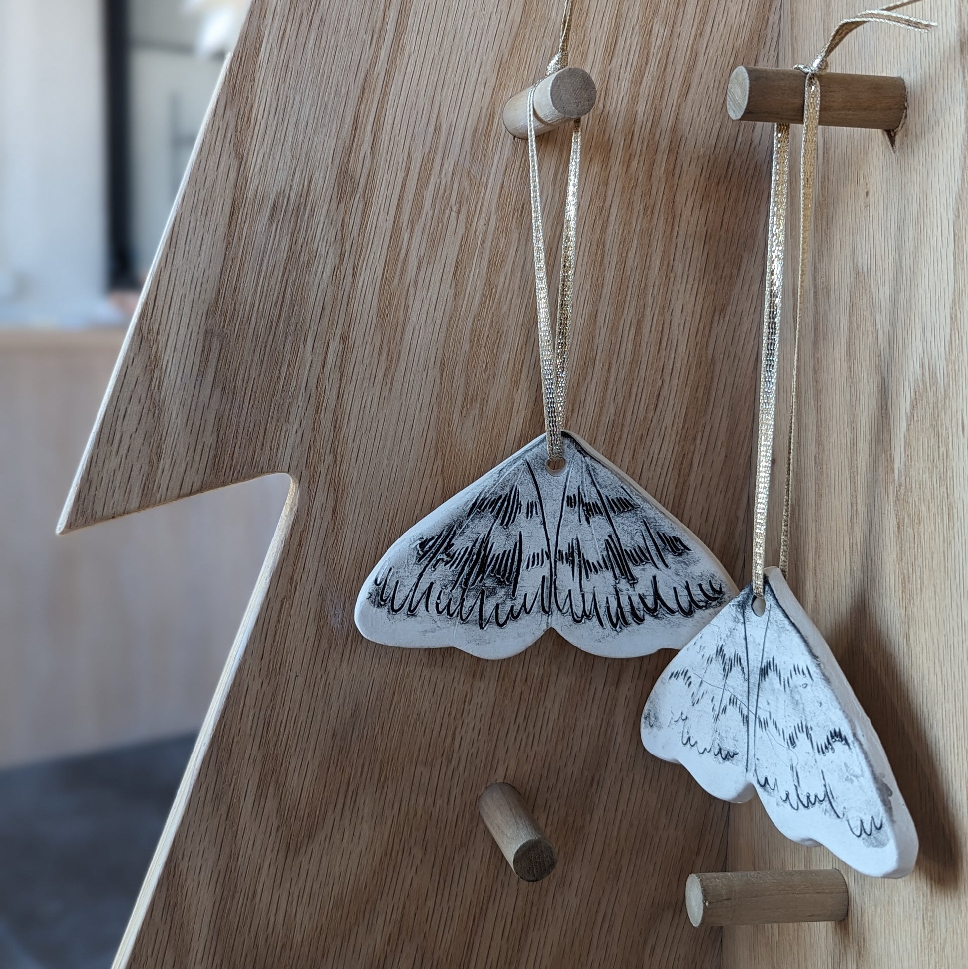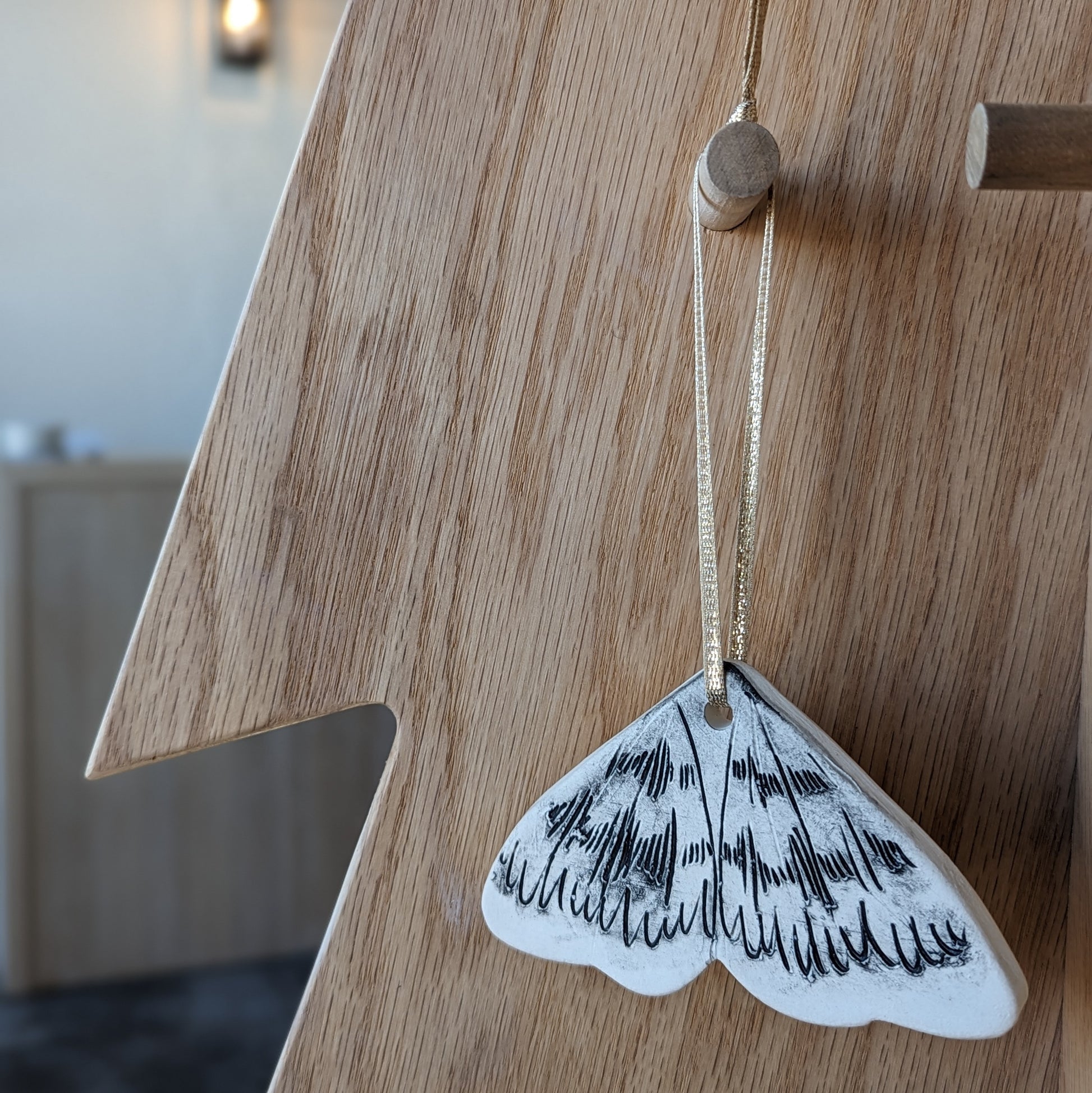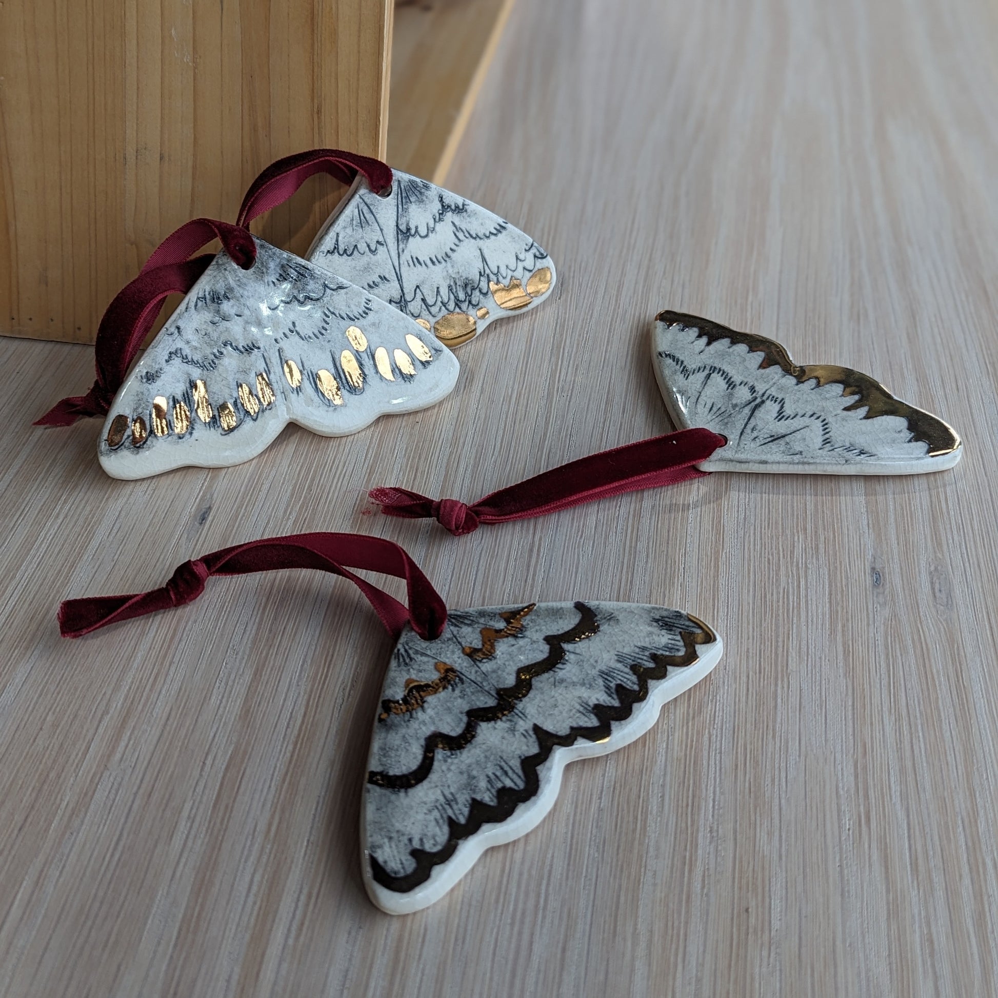 These beautiful hand painted moth ornaments were each lovingly hand crafted out of porcelain.