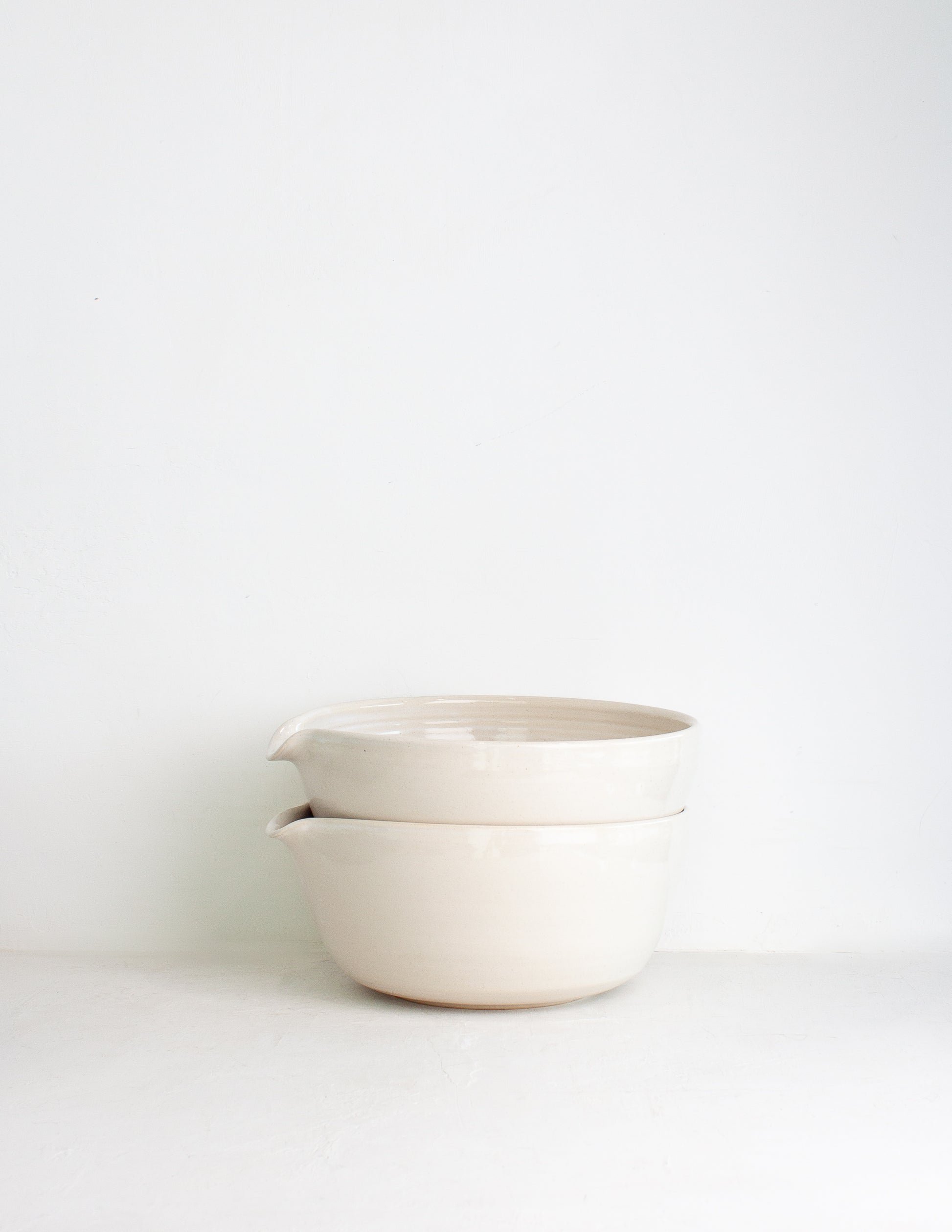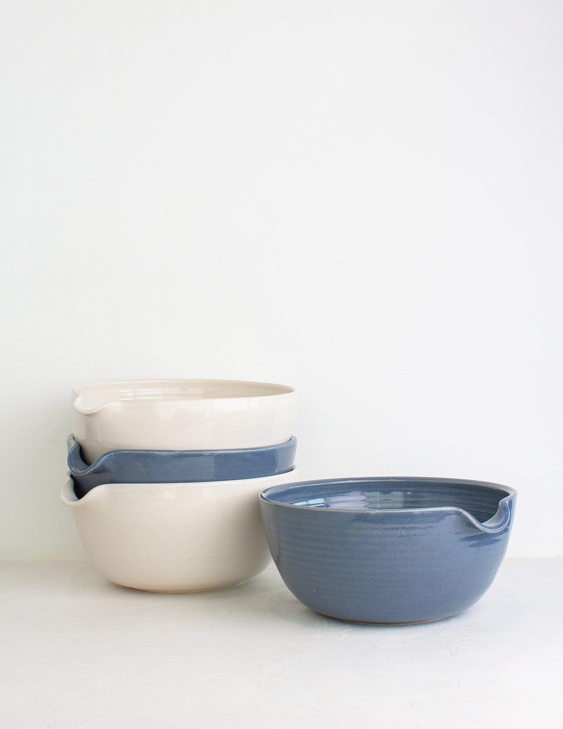 These hand-thrown spouted mixing bowls are the perfect combination of form and function. Each unique bowl is sure to add handmade charm to your kitchen while elevating your baking experience or countertop storage.